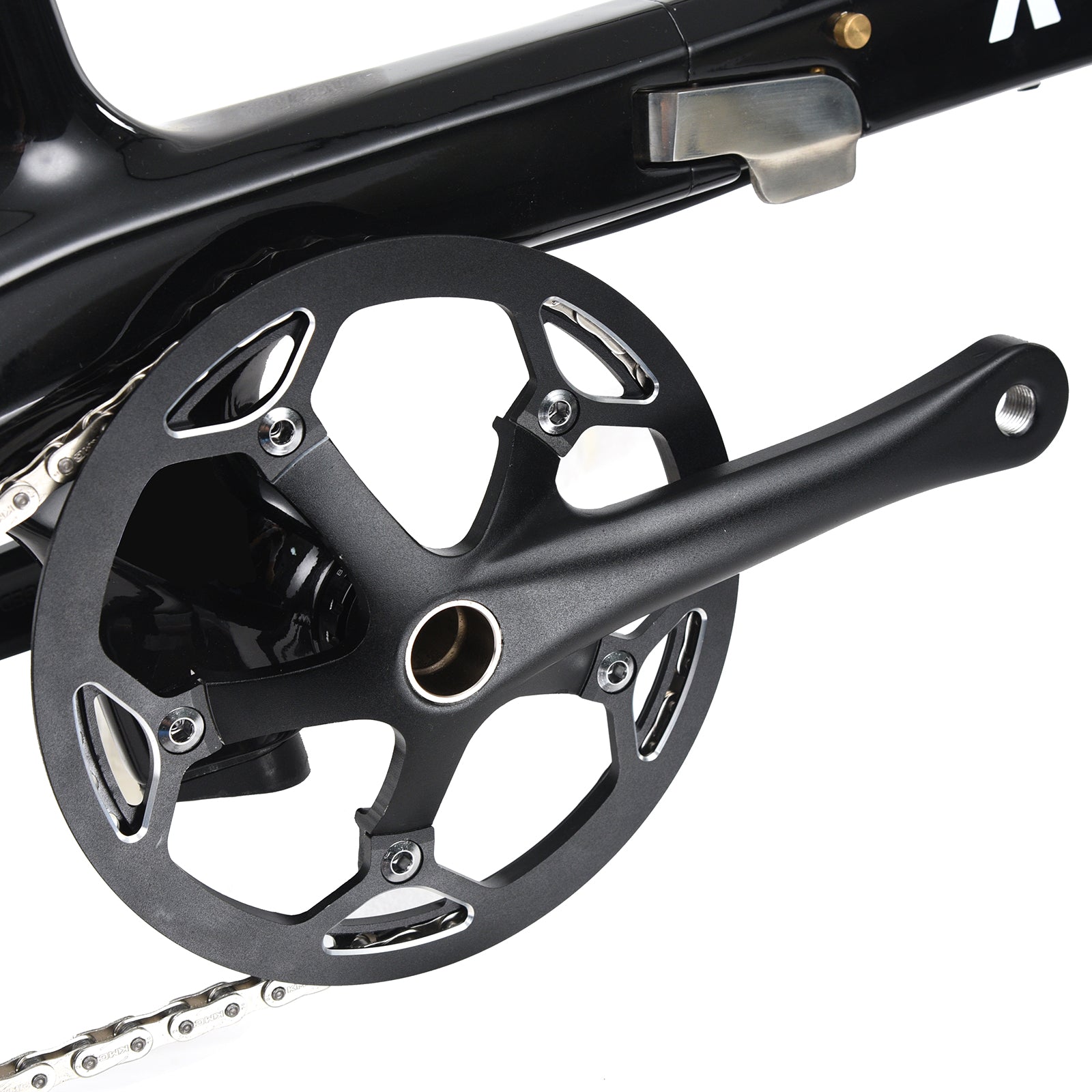 • T800 carbon fibre frame: the carbon fibre frame made of aerospatial quality is made with the latest technology, resulting in an ultra-light and stable frame, and weighs only 14.7 lb(6.7 kg). The struts, seat tube and other parts of the frame have been newly developed and shaped according to aerodynamic principles.
