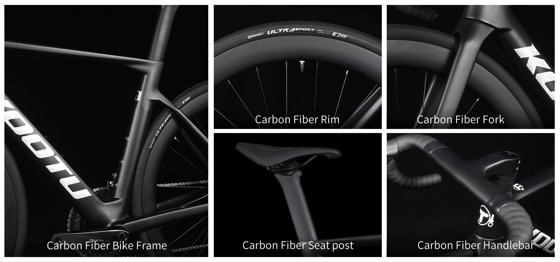 A:The frame, fork,seatpost,wheelset and handlebar of this bike are made of carbon fiber.